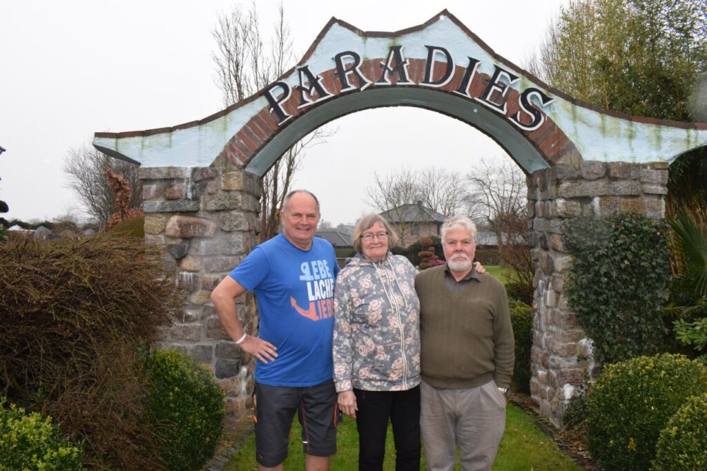 Die Aktion rief schnell die Polizei auf den Plan, die mit Masken ausgestatteten Beamten monierten sofort die geringen Abstände der Beteiligten. „Aber das üben wir doch gerade, deshalb sind wir hier, hatten wir den Polizisten gesagt. Das haben die auch geschluckt, und einige grinsten auch“, erinnert sich Alfred und lacht. Der ehemalige Betreiber eines Garten- und Landschaftsbaubetriebs lebt in einem alten Bauernhaus mit einem wunderschönen, parkähnlichen Garten inklusive eines Fischteichs und einer als Bühne genutzten, Efeu umrankten Ruine. Über dem Eingang prangt der Name dieses dörflichen Refugiums: Paradies.