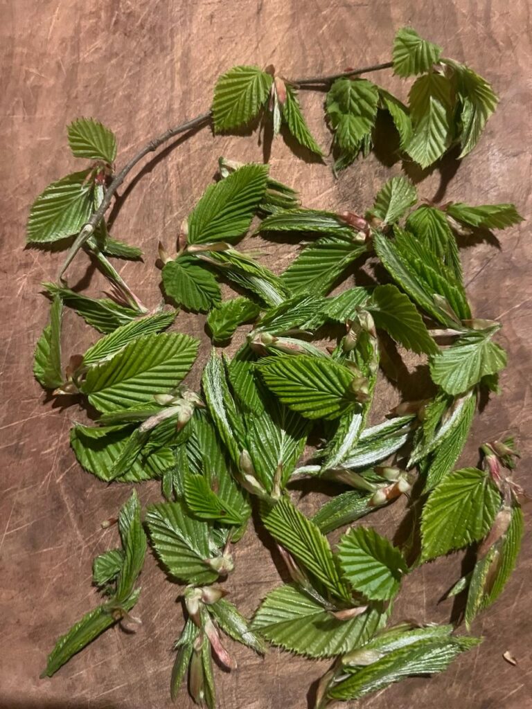 Richten wir den Blick auf die Familie der Birkengewächse (Betulacaeae). Für Allergiker ein Albtraum, lassen sie mein grünes Herz höherschlagen. Birken, Hasel, Erlen und Hainbuche gehören zu den wichtigsten heimischen Arten, ihre Blütenstände – so quälerisch von Heuschnupfen Geplagte diese erleben – sind reich an Proteinen und Mineralstoffen. Sie lassen sich vielseitig in der Küche verarbeiten und sind getrocknet und gemahlen u.a. zur glutenfreien Anreicherung von Mehl geeignet. Die für die Birkengewächse so typischen Haselkätzchen, den männlichen Samenständen, sind ein Erkennungsmerkmal auch bei den anderen Arten.