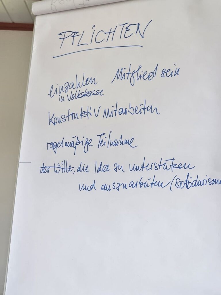 Um nichts anderes ging es bei diesem Treffen. Deswegen hat man den ursprünglichen Begriff „Volkskasse“ in die modernere Form der Bürgschaftskasse transformiert. Der „Volksvertrag“ war jedenfalls das Papier, das von den rege diskutierenden Wirkraft-Mitgliedern als Grundlage für dieses sehr ambitionierte Finanzierungsprojekt herangezogen wurde.